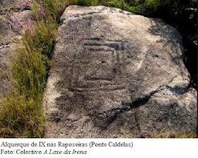 Con una escueta frase se nos presenta otro "alquerque de IX", también bastante mal conservado por las inclemencias del tiempo : "O colectivo a Laxe da Irena localizou nas Raposeiras, gravado sobre unha rocha, un alquerque de IX."